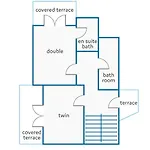 As comodidades dos quartos incluem Wi-Fi e TV via satelite, bem como confortos, tais como controle de temperatura. O quarto inclui chuveiro, secador de cabelo e lençóis de banho.
